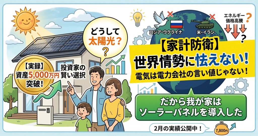 【実録】資産5000万円を突破した我が家が「太陽光発電」に投資した3つの理由。エネルギー危機への最強ヘッジ術