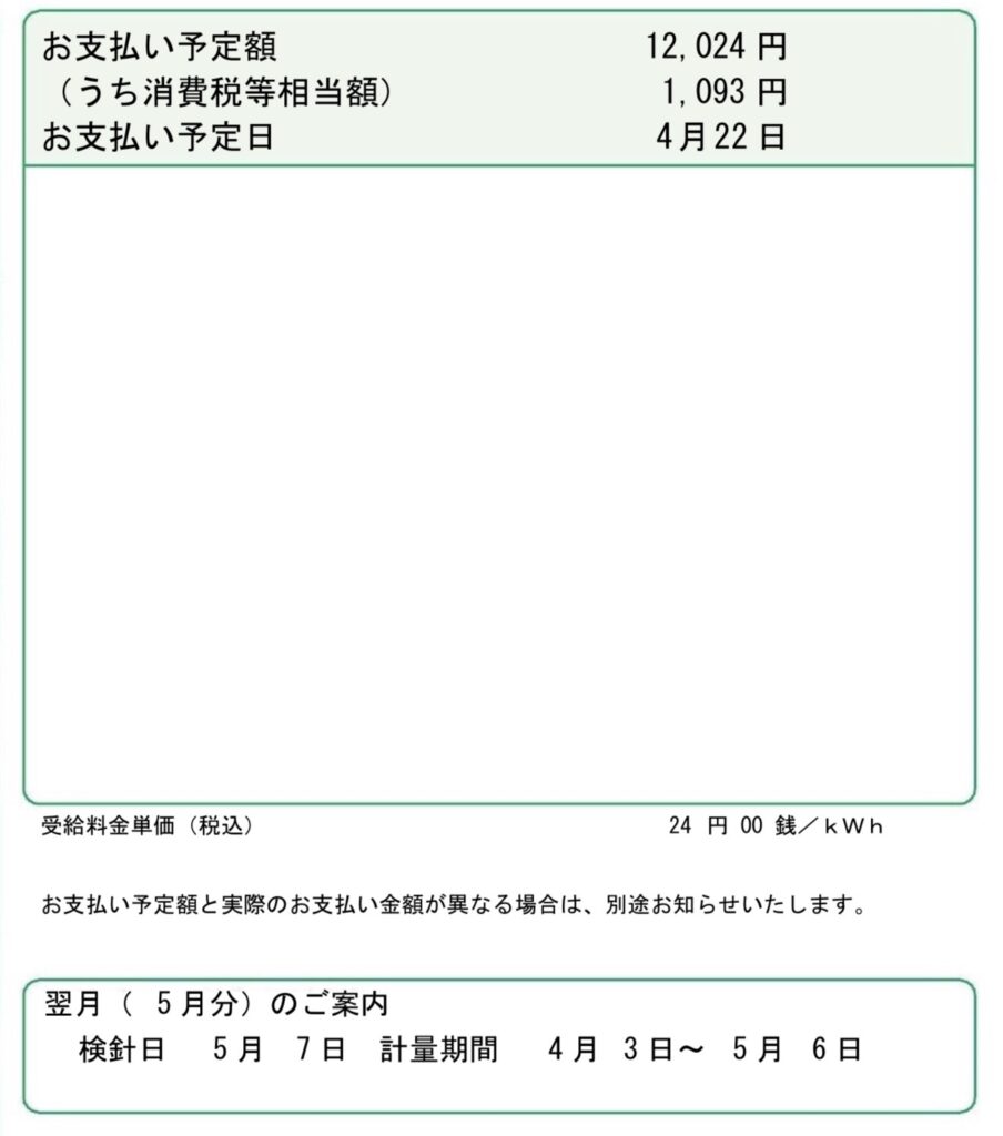 | 売電収入 | 12,024円 |