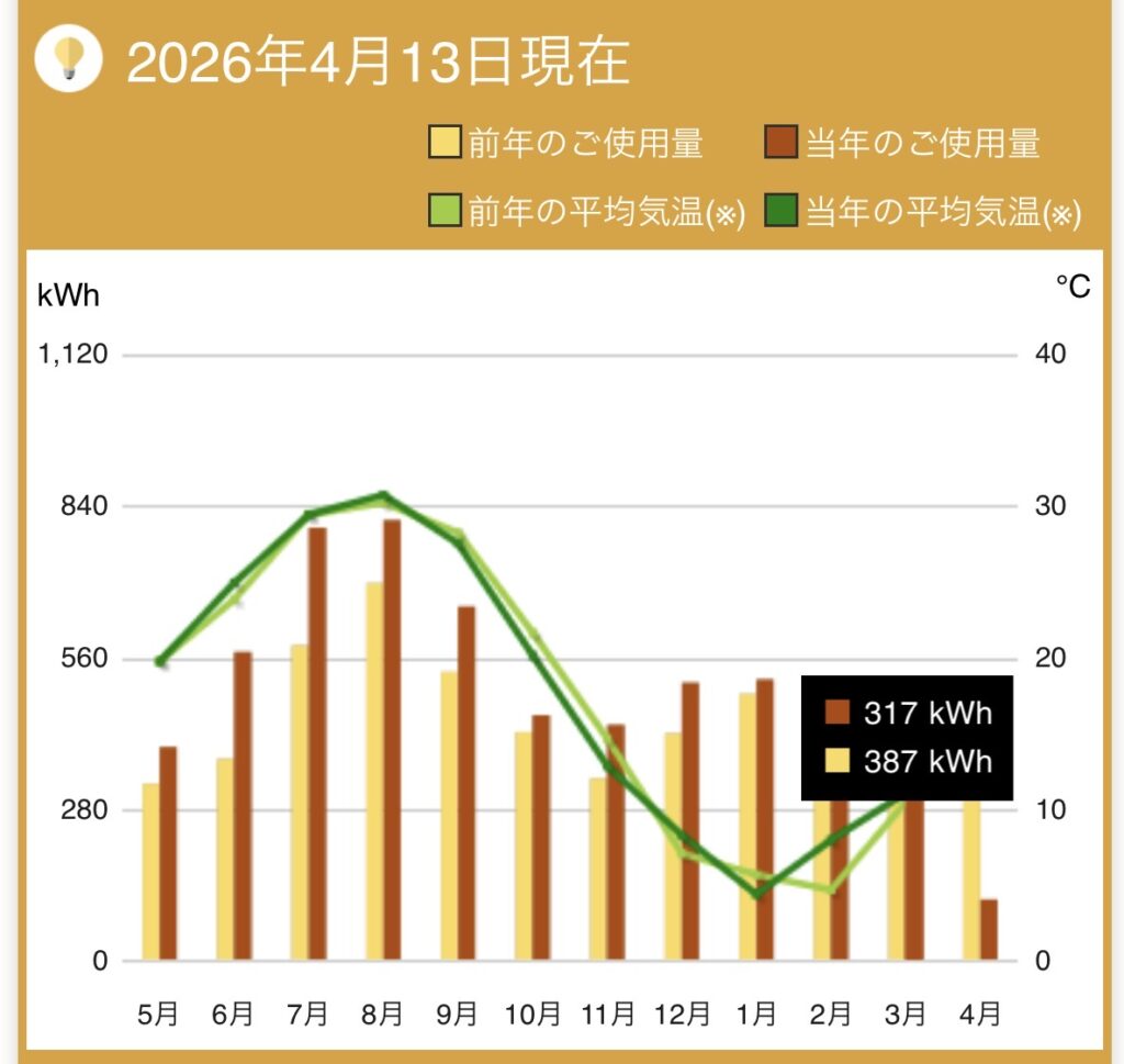 | 電気使用量(当年) | 317 kWh |